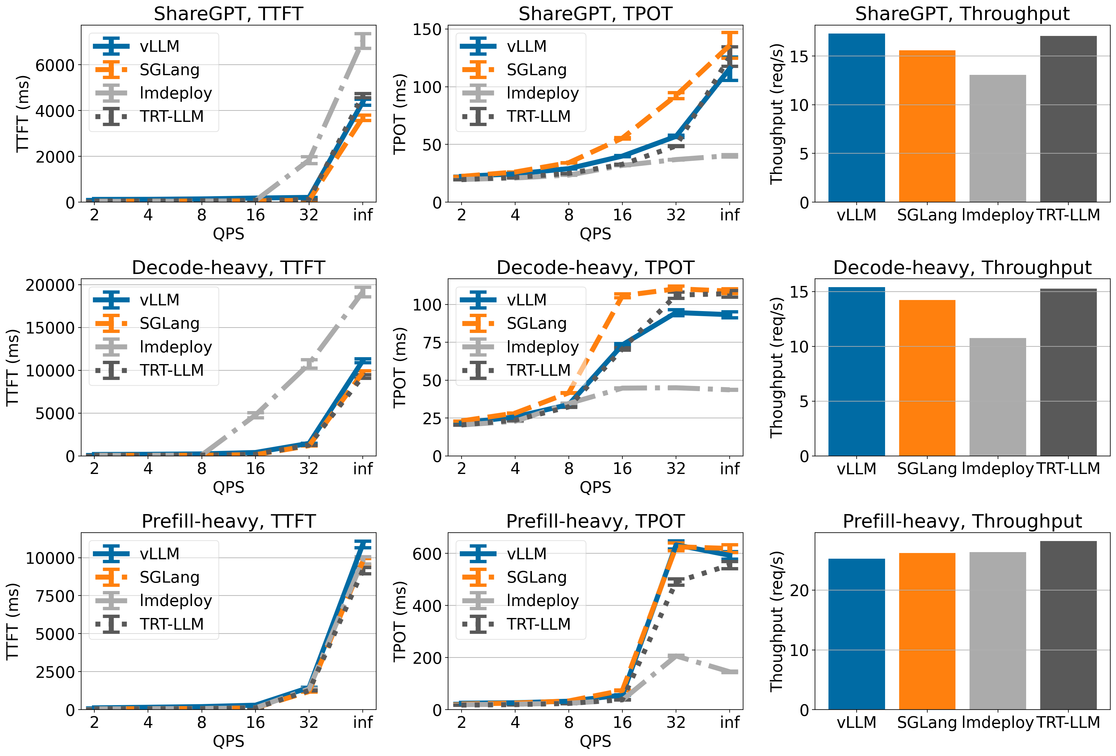 - Throughput is measured under QPS inf (meaning that all requests come at once).